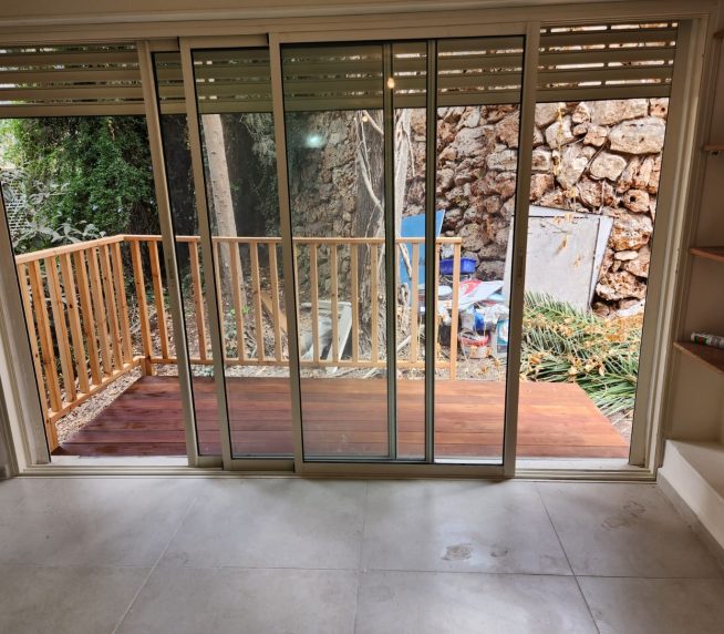 דירה משופצת מקבלן בבניין עם חדר המדרגות היפהפה ביותר בעיר. 86 מ"ר – 4 חדרים עם מרפסת דק מקסימה מהסלון שממנה גישה ישירה לגינה משותפת, ממ"ד, מושכרת ב4,500 לשנתיים קדימה, קומה 2 מתוך 4